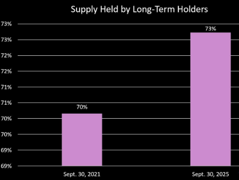 类似地,从 2023 年 12 月到 2025 年 2 月,长期持有者供应量下降 12.4%,之后回升至当前 73% 的水平。